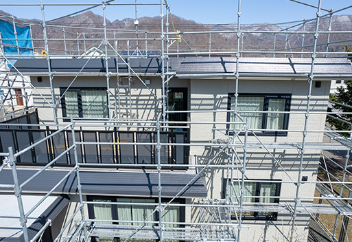 戸建て住宅やマンションなどの、すでに建っている物件を改修する際に必要な足場を組みます。新築足場とは異なり、建物・施主様・近隣の方といった、さまざまな配慮が必要不可欠です。