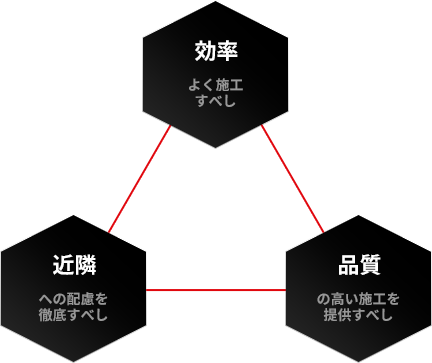 新築や解体よりも、施主様・近隣の方々・周辺の建物への配慮が大切です。施主様の生活を阻害せずに高品質な工事を効率よく行うことが、私たち鳶職人に求められます。